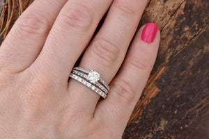 1 ct diamond ring-Art deco wedding set-halo engagement ring set -Cluster engagement ring-halo ring set-4 prong engagement-Wedding sets rings