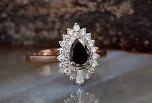 ring-Promise ring-Art deco ring-Gatsby ring-Black diamond ring rose gold-Solid gold ring-Branch ring-Edwardian ring