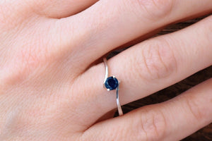 Sapphire solitaire ring-Sapphire promise ring dainty-Dainty Promise Ring-Curved sapphire ring-Blue sapphire ring-Women's sapphire ring